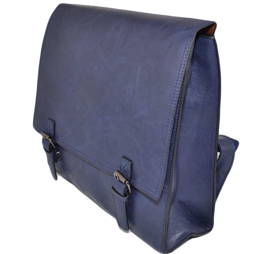 Zaino uomo business blu a cartella effetto 24 ore con chiusura a zip 2 aperture con fibbie frontali lunghe e tracolle