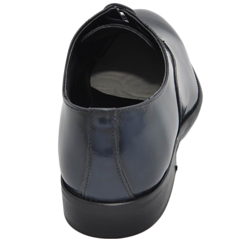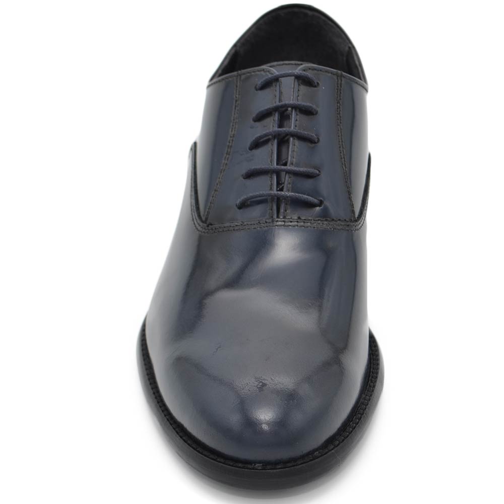 -DETTAGLI: Scarpe uomo francesina blu pelle lucida fondo cuoio