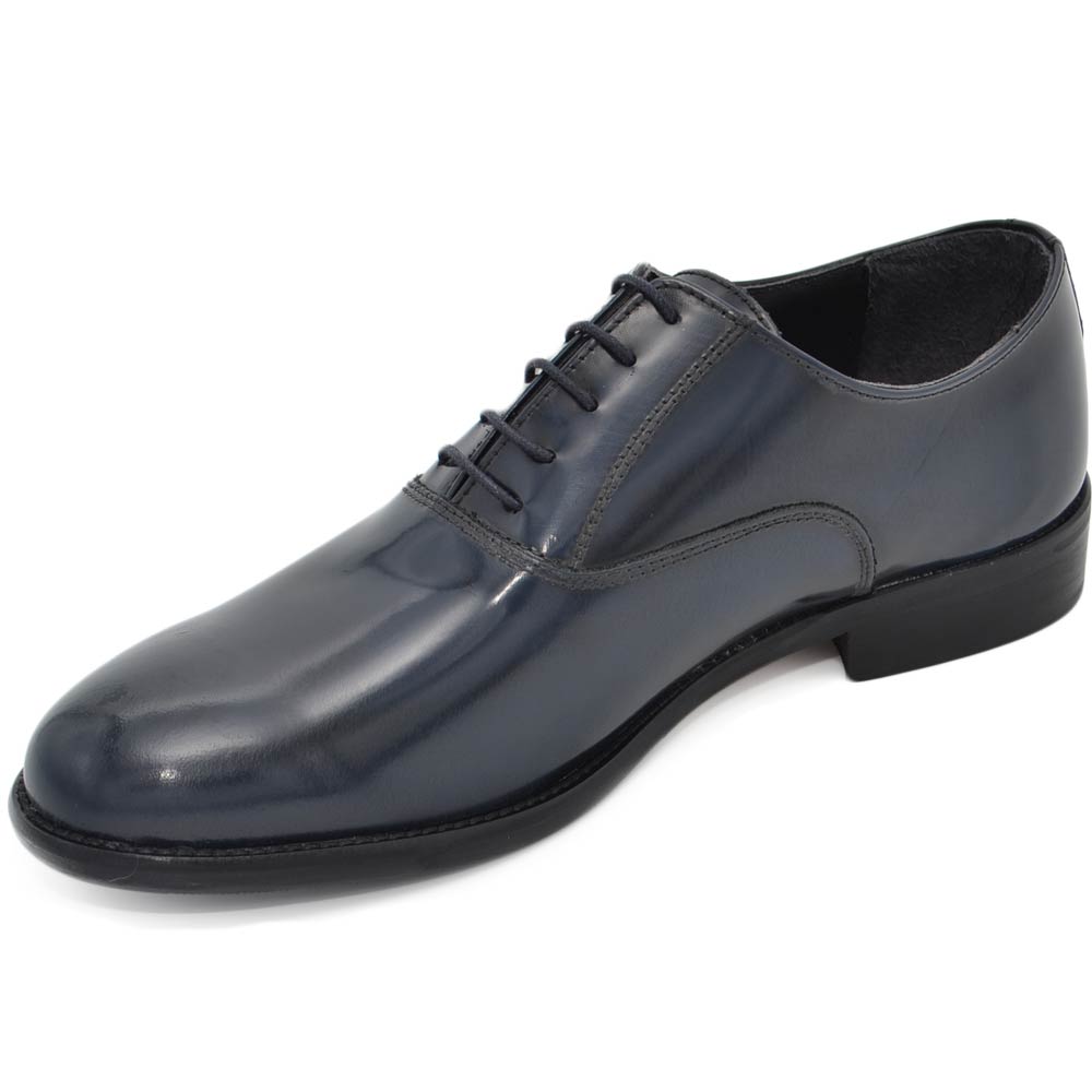 Scarpe uomo francesina blu pelle lucida fondo cuoio antiscivolo blu stringhe genuine leather classico cerimonia