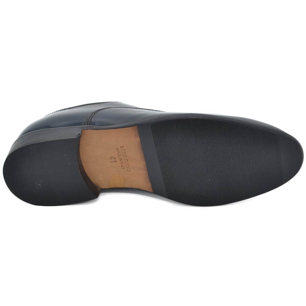 Scarpe uomo classica stringata con fondo cuoio e antiscivolo vera pelle lucida blu con monogramma cerimonia	.