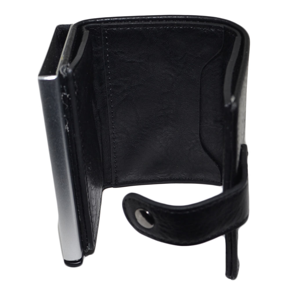 Portafoglio Wallet uomo in vera pelle nero portacarte pocket con molla e salvacarta con gancio contanti chiusura clip.