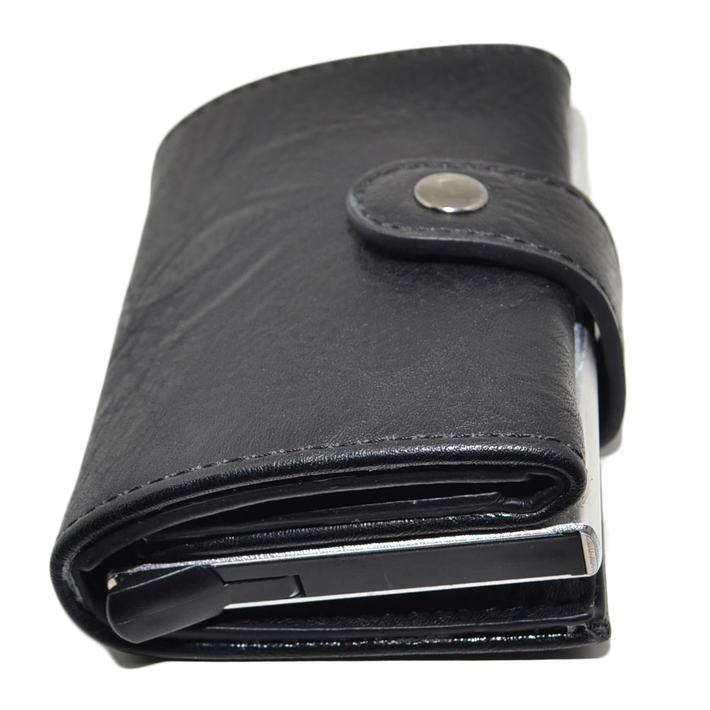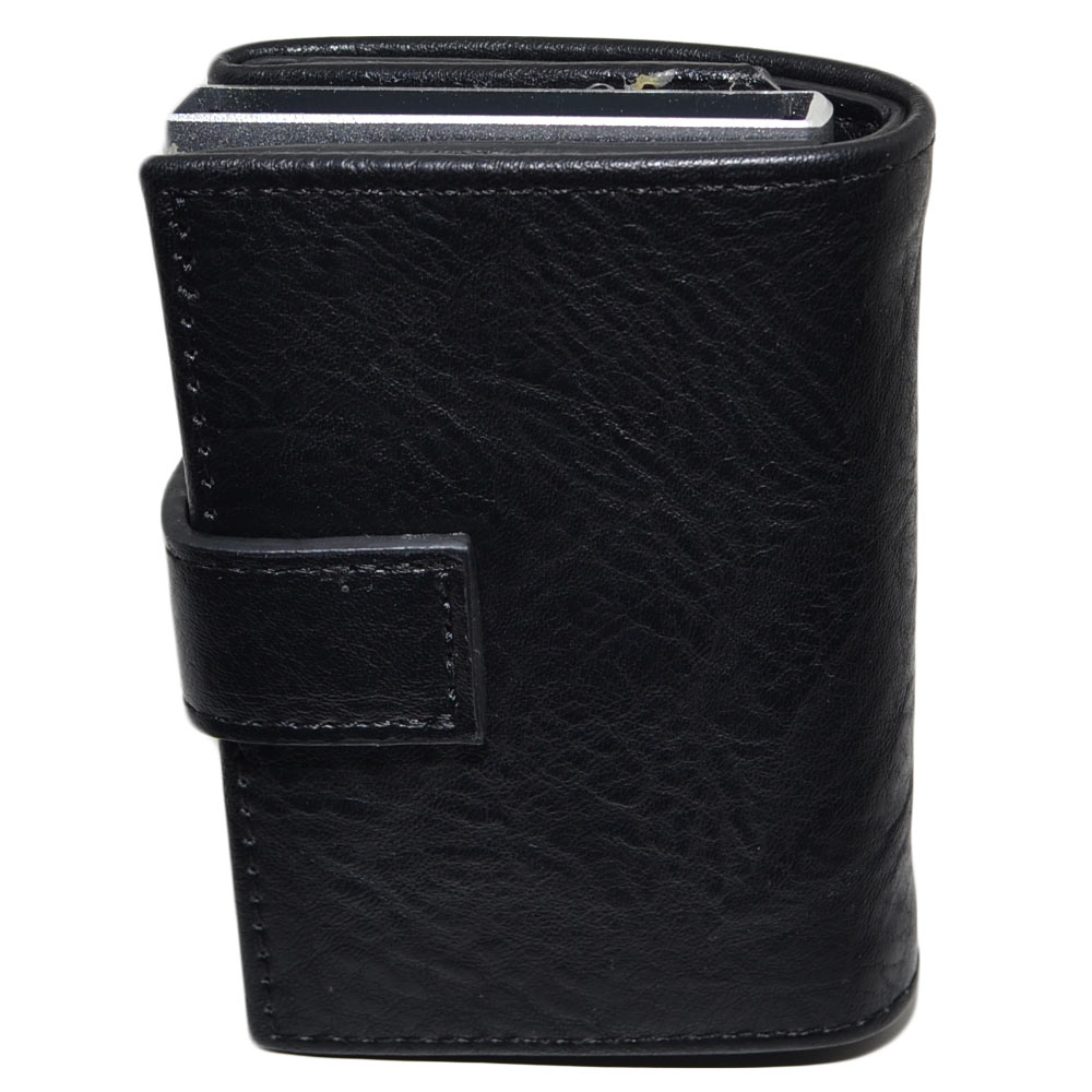 Portafoglio uomo in vera pelle nero portacarte pocket con molla e salvacarta in acciao gancio contanti chiusura ciap.