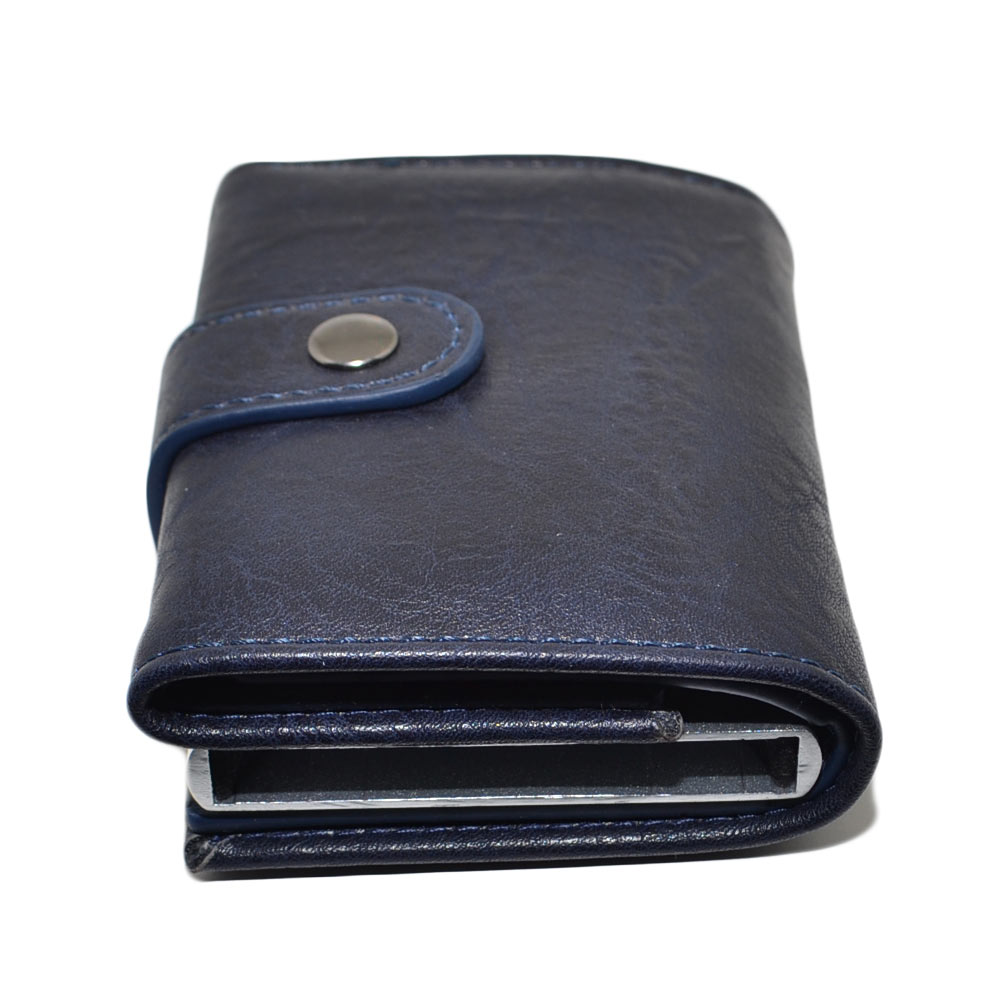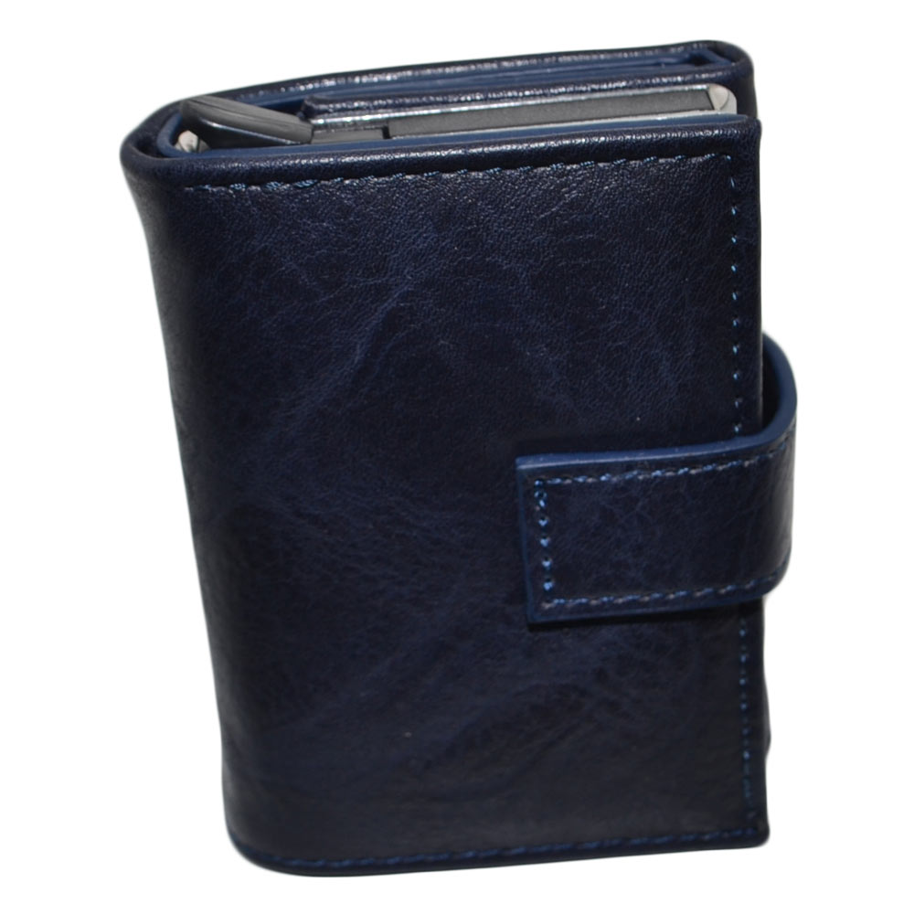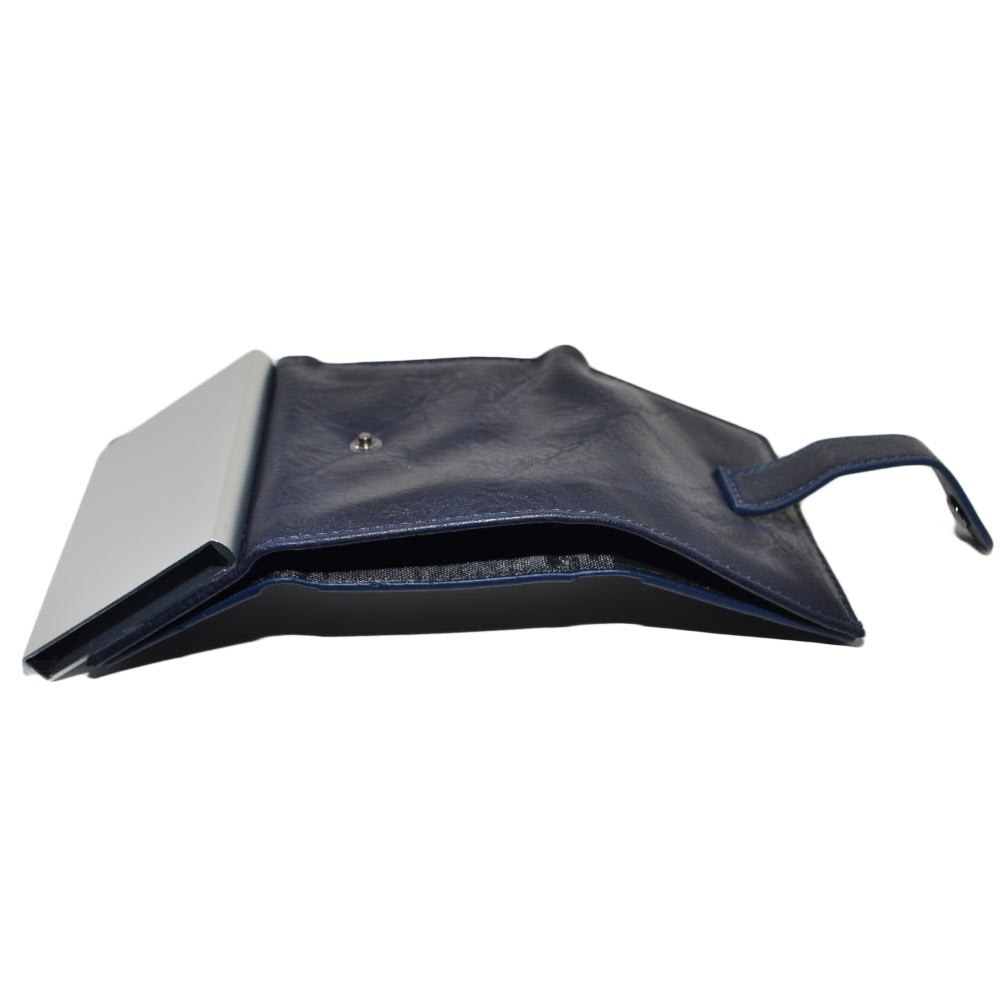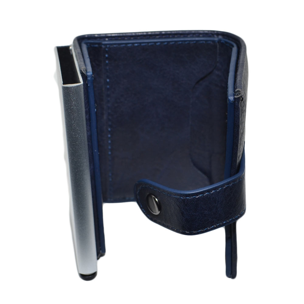Portafoglio Wallet uomo in vera pelle blu portacarte pocket con molla e salvacarta con gancio contanti chiusura clip