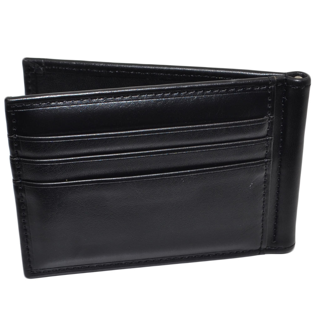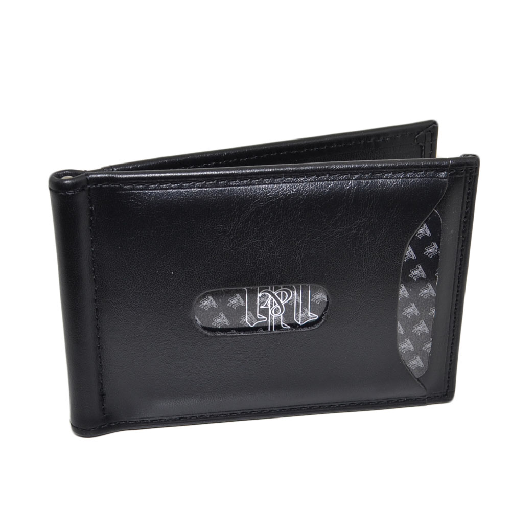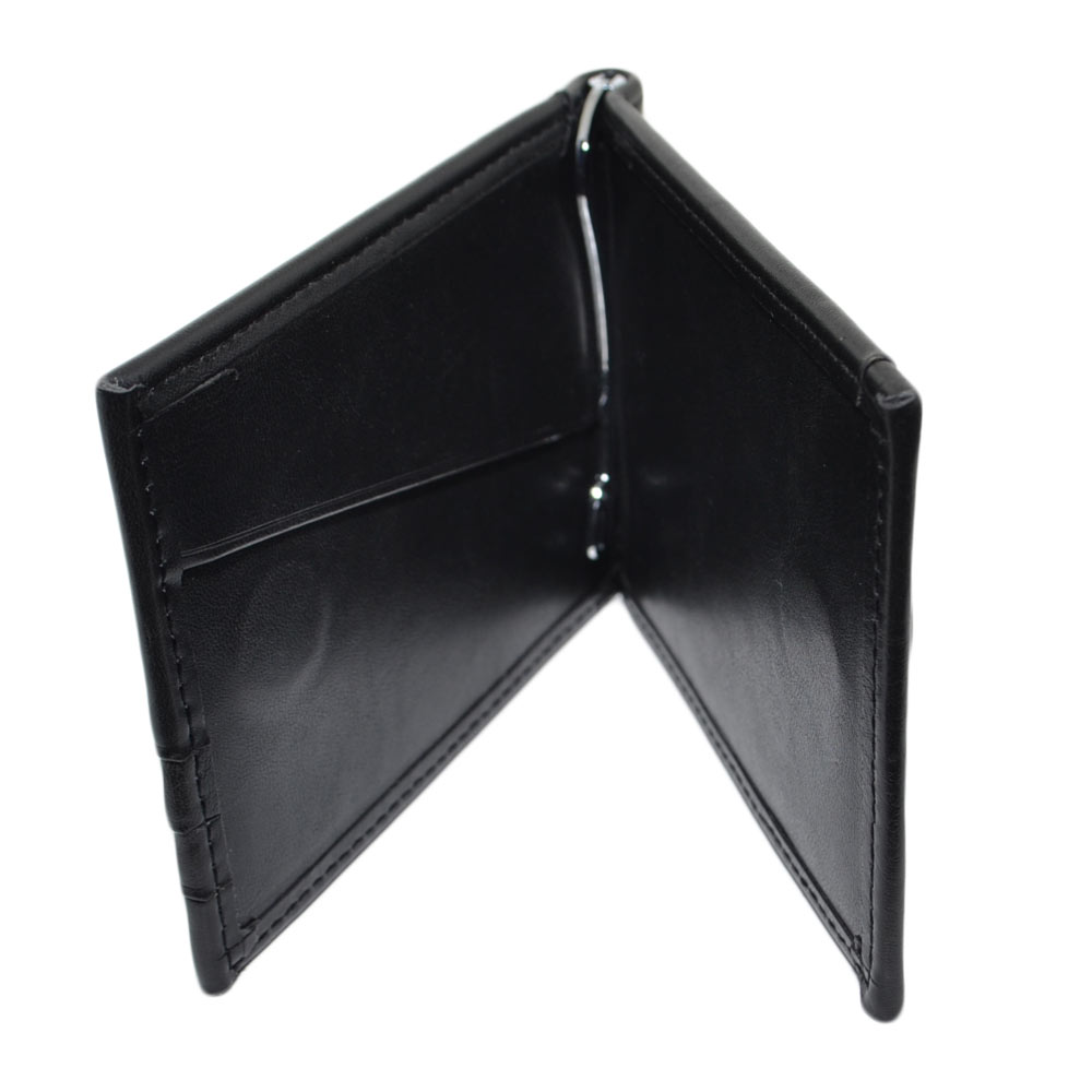 Portafoglio Wallet uomo in vera pelle nero portacarte pocket con molla e salvacarta con gancio contanti chiusura clip.