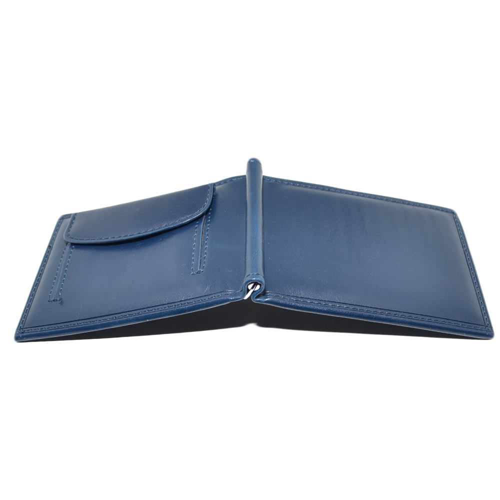 PORTAFOGLIO UOMO WALLET IN VERA PELLE BLUE NAVY CON PORTACARTE E PORTAMONETE DUREVOLE MODA