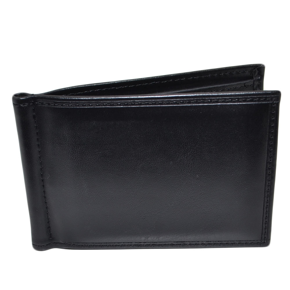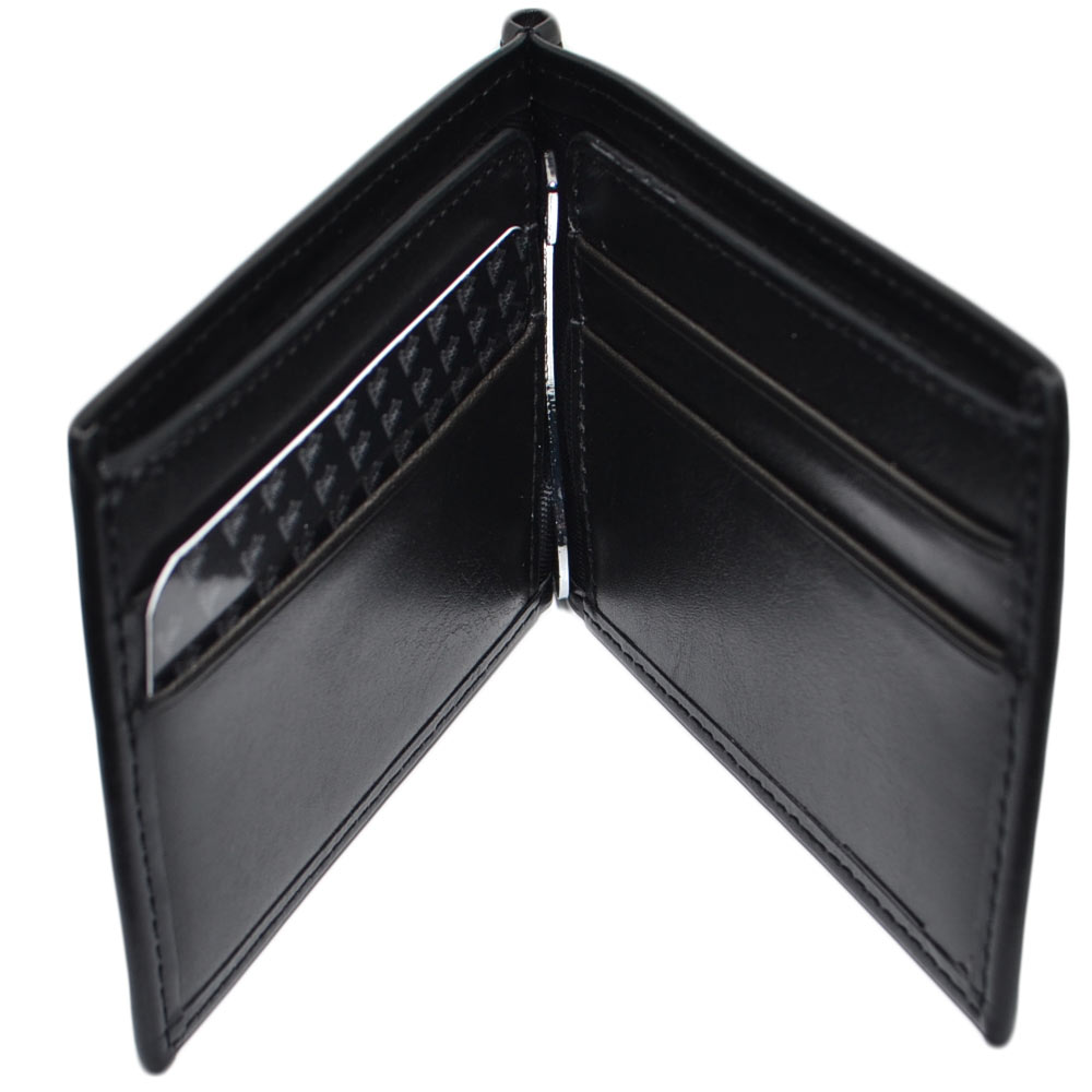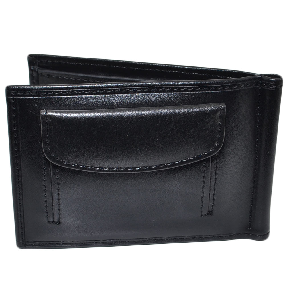Portafoglio Wallet uomo in vera pelle nero portacarte pocket con molla e salvacarta con gancio contanti chiusura clip.