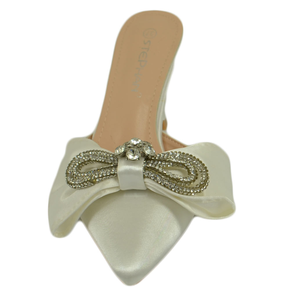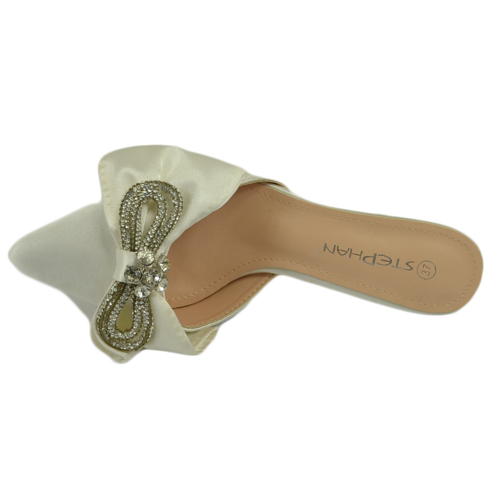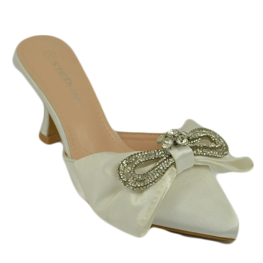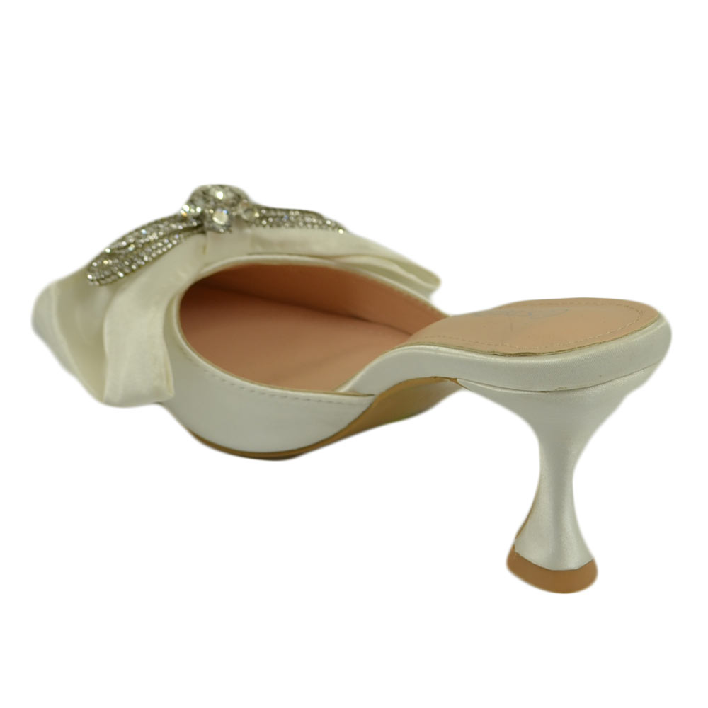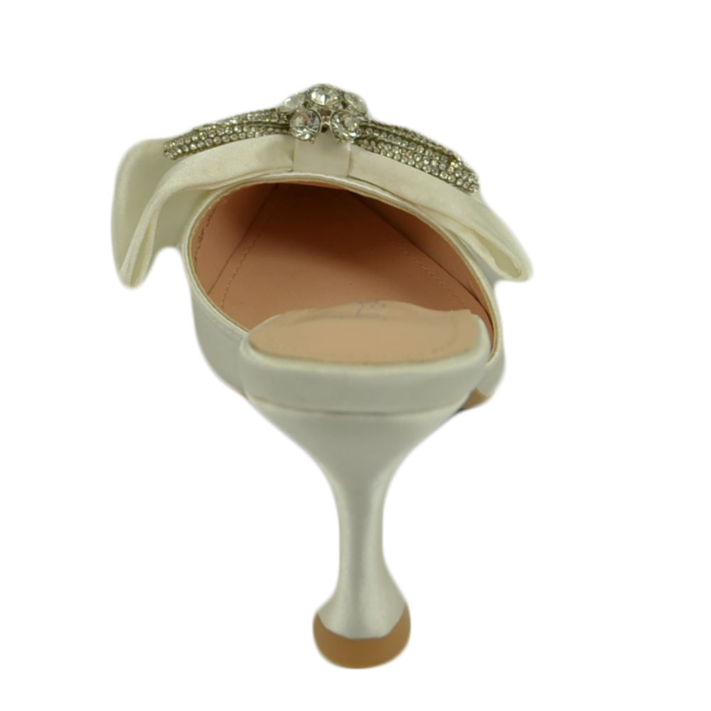 Scarpe decollete mules donna elegante punta in raso rosa cipria tacco a spillo 12 cerimonia con allacciatura schiava.