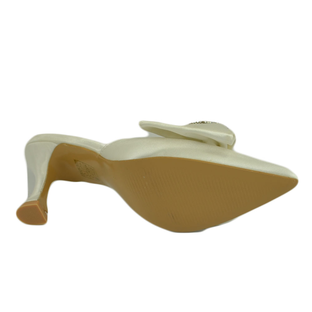 DECOLLETE' DONNA BIANCO OPEN TOE TACCO 6 CM ELEGNTE FIOCCO IN TESSUTO CON FERMAGLIO COMODO MODA GIOVANE