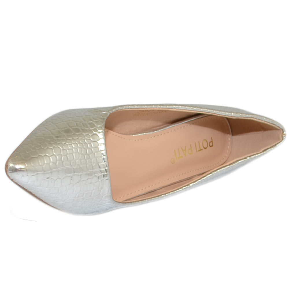 Decollete' scarpe donna a punta tartaruga argento tacco a spillo midi 5 cm in pelle comodo per cerimonie eventi ufficio