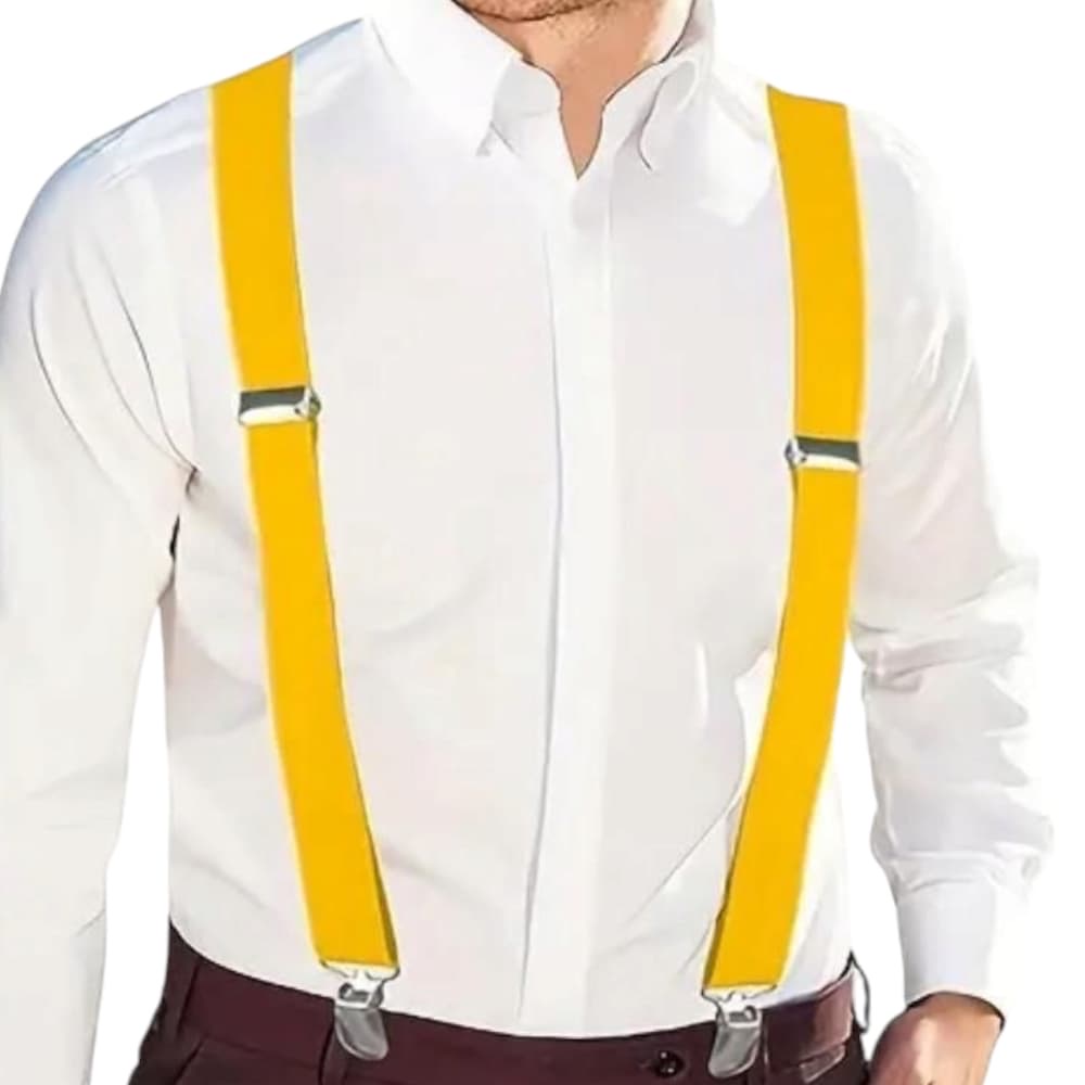 BRETELLE DA UOMO REGOLABILI GIALLE CON CLIP IN METALLO FORMA A X EXTRA FORTE MODA