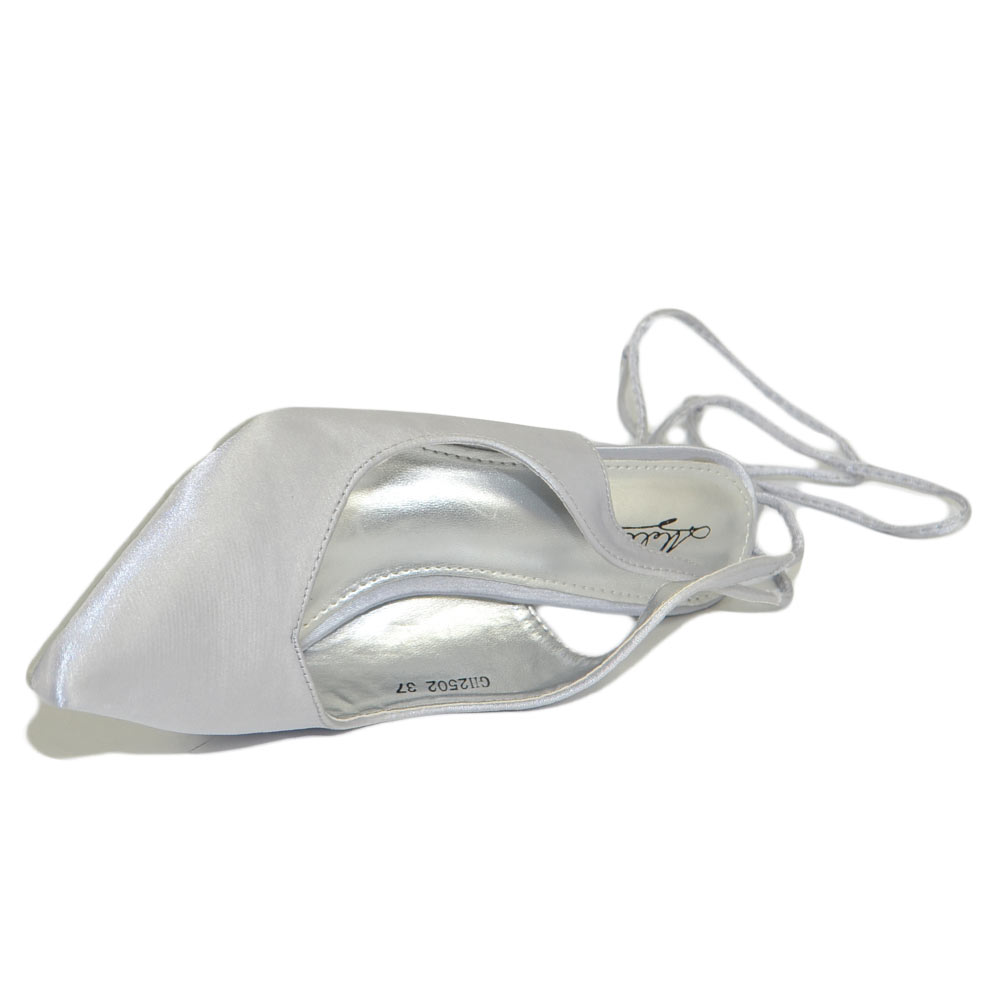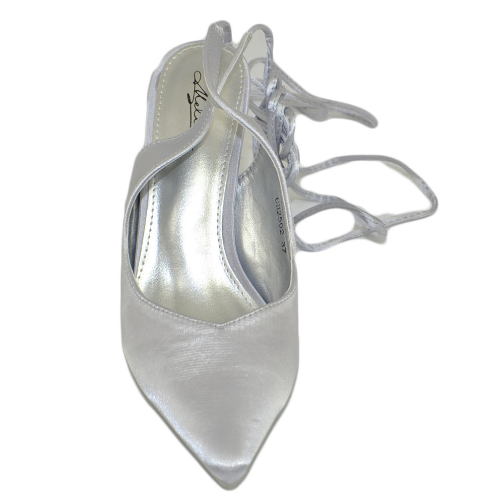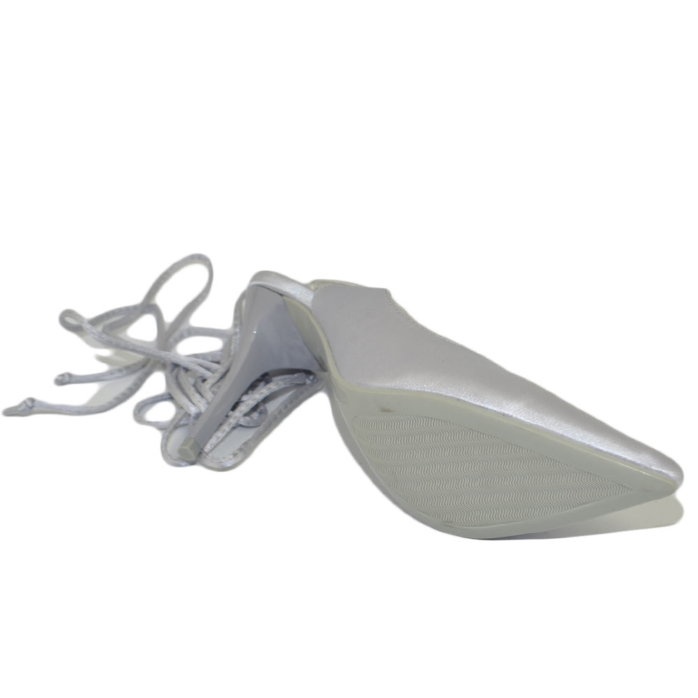 Scarpa tacco donna grigio raso sandalo punta tallone scoperto allacciatura schiava caviglia lacci scollo v decollete
