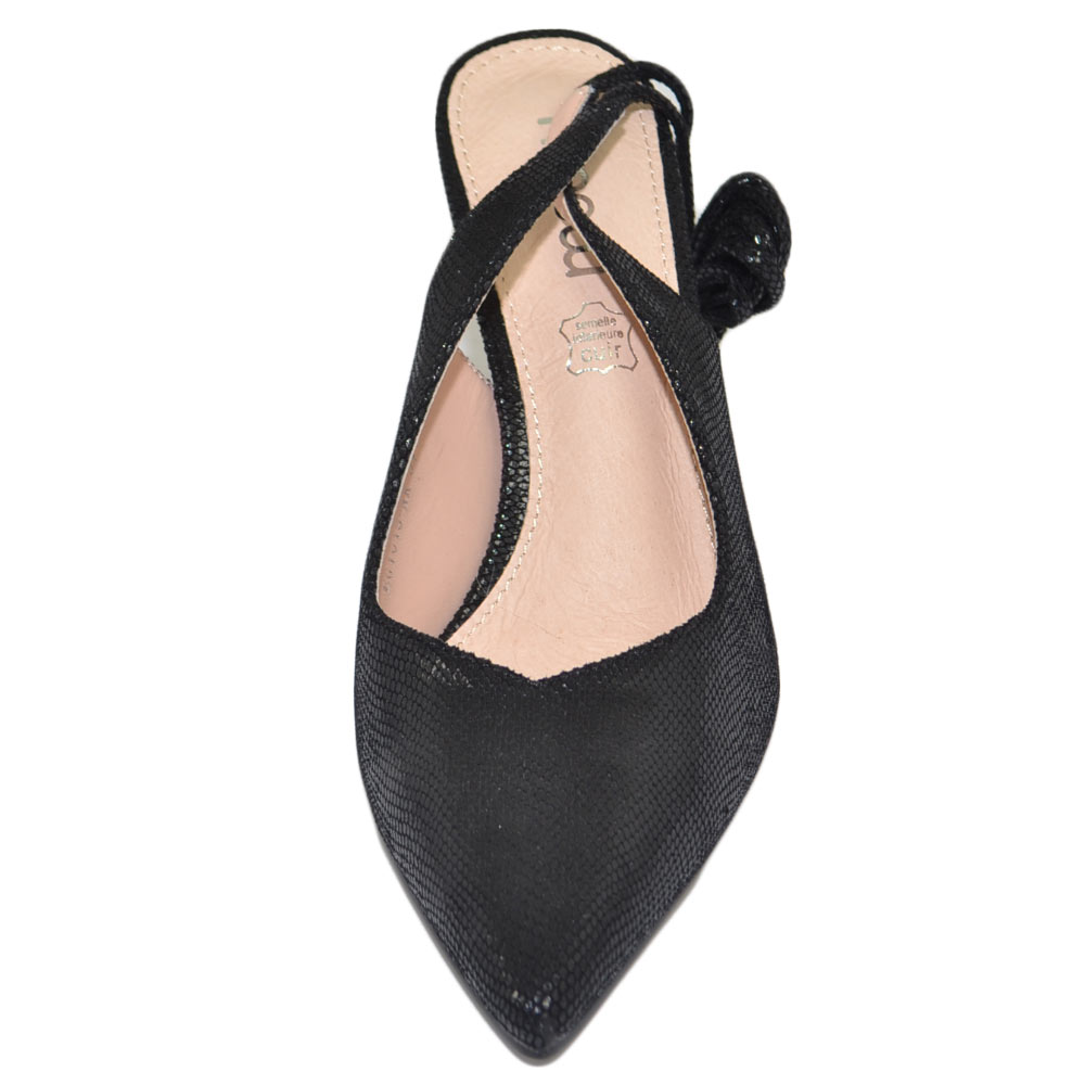 Scarpa decollete' donna a punta slingback con trasparenza nera e brillantini con tacco mini 3 cm e cinturino tallone.