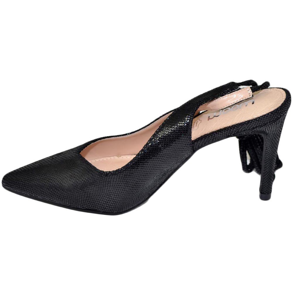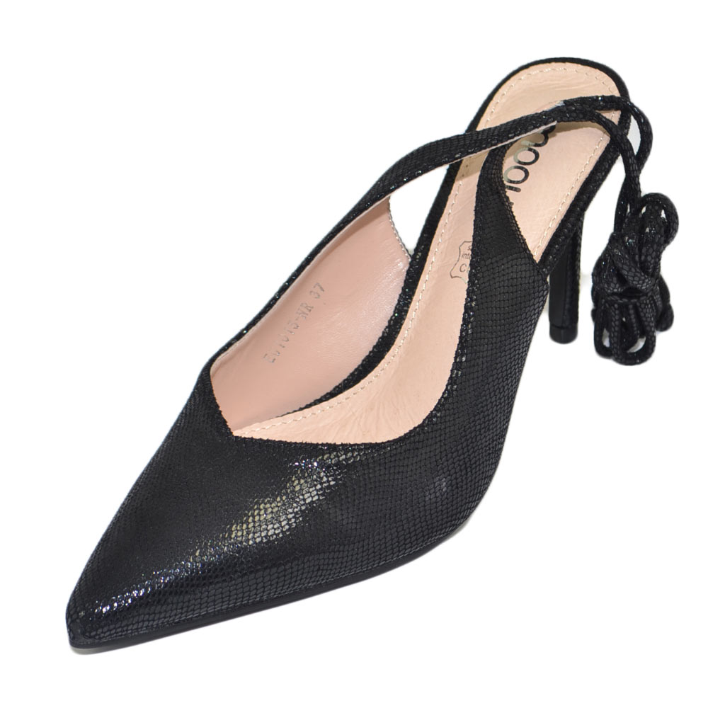 Decollete' donna sandalo nero punta cocco tallone scoperto allacciatura schiava caviglia lacci scarpa tacco 10.