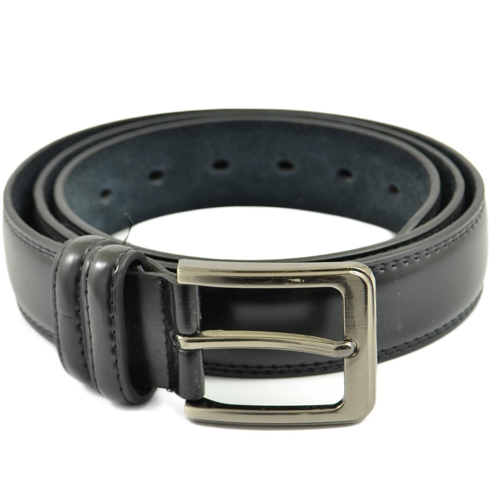 Cintura Uomo Cintura Regolabile Pellame Opaco Abrasivato Nero Tinta Unita con Fibbia in Metallo Linea Classica