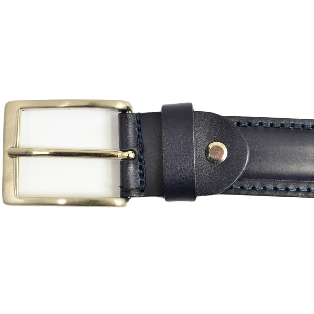 Cintura Uomo Cintura Regolabile Pellame Opaco Abrasivato Blu Tinta Unita con Fibbia in Metallo Linea Classica