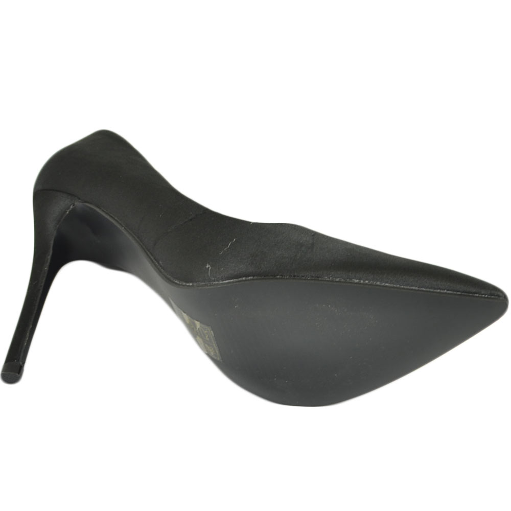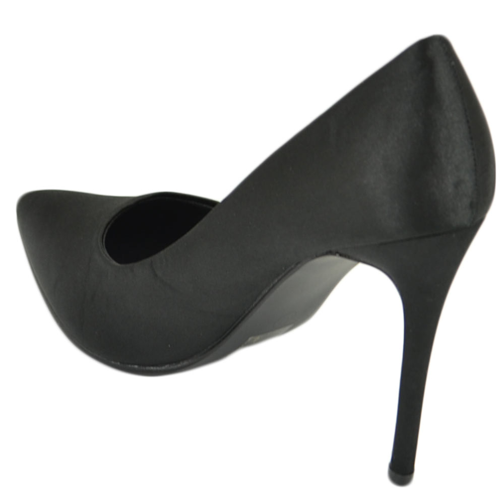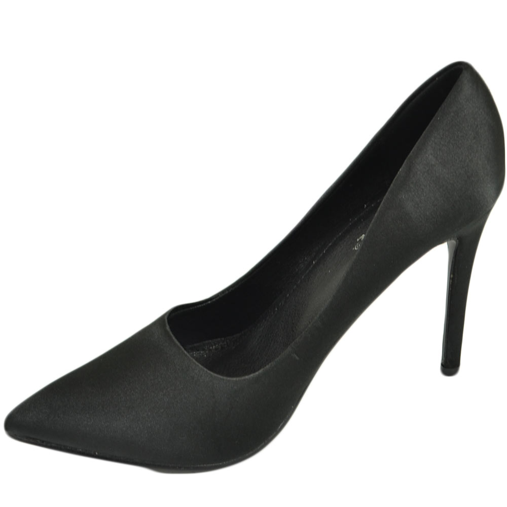 Scarpe donna decollete a punta elegante in raso nero lucido tacco a spillo 12 cm moda elegante cerimonia evento