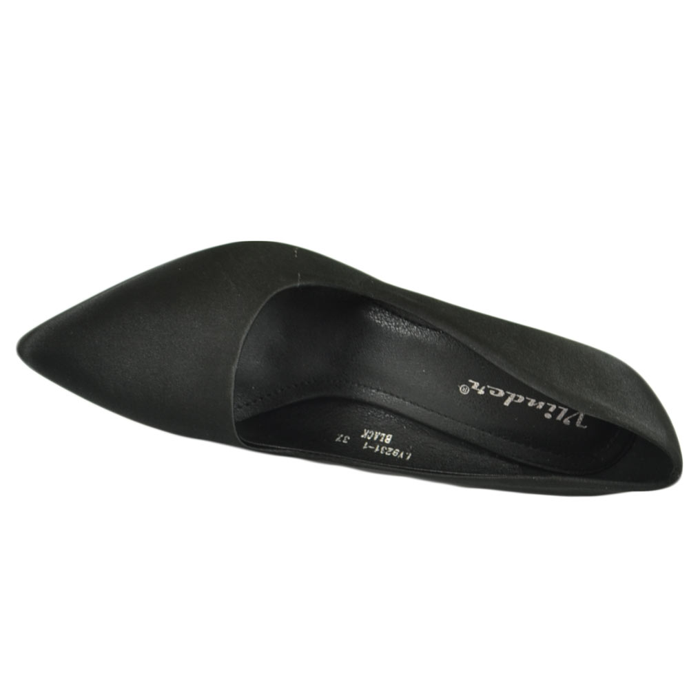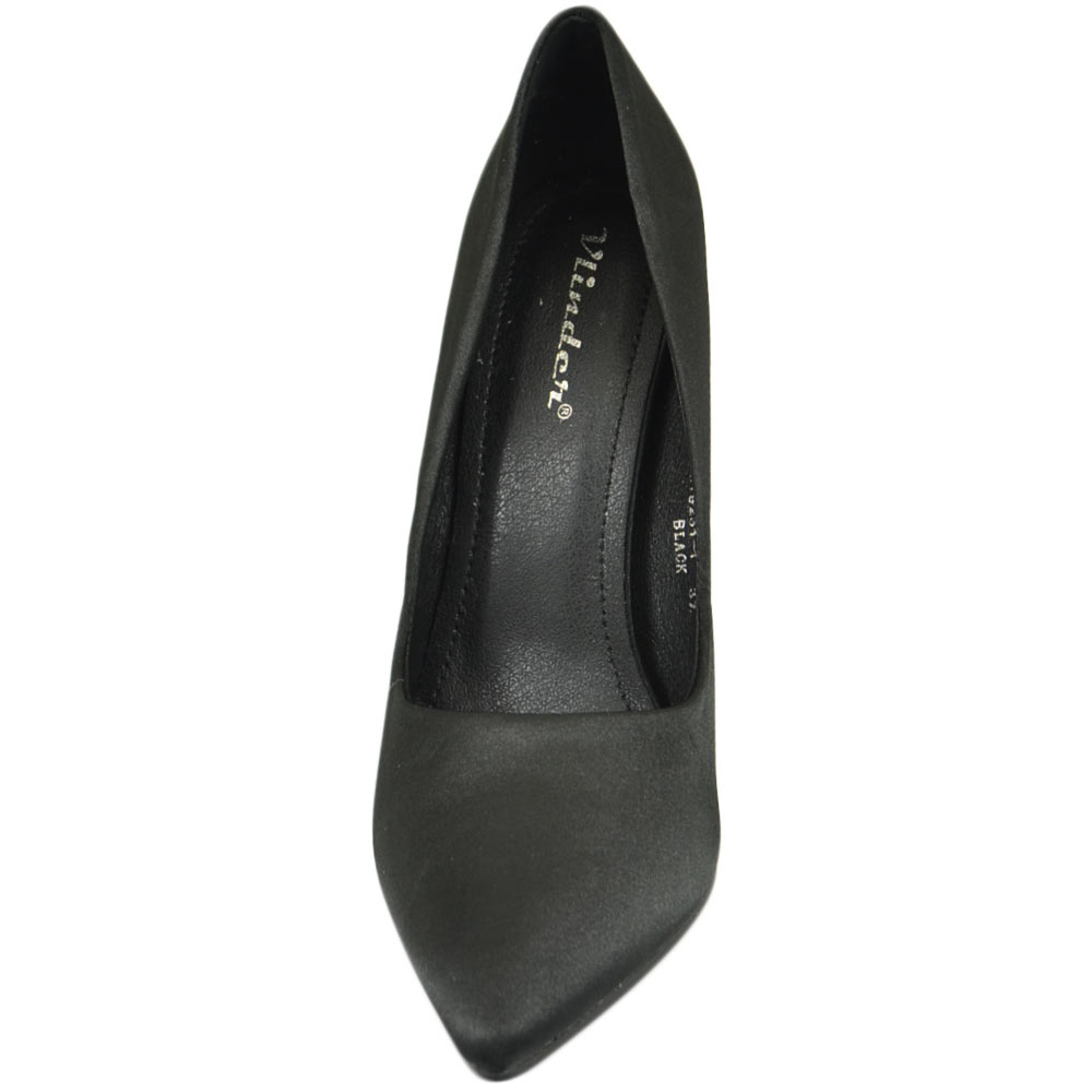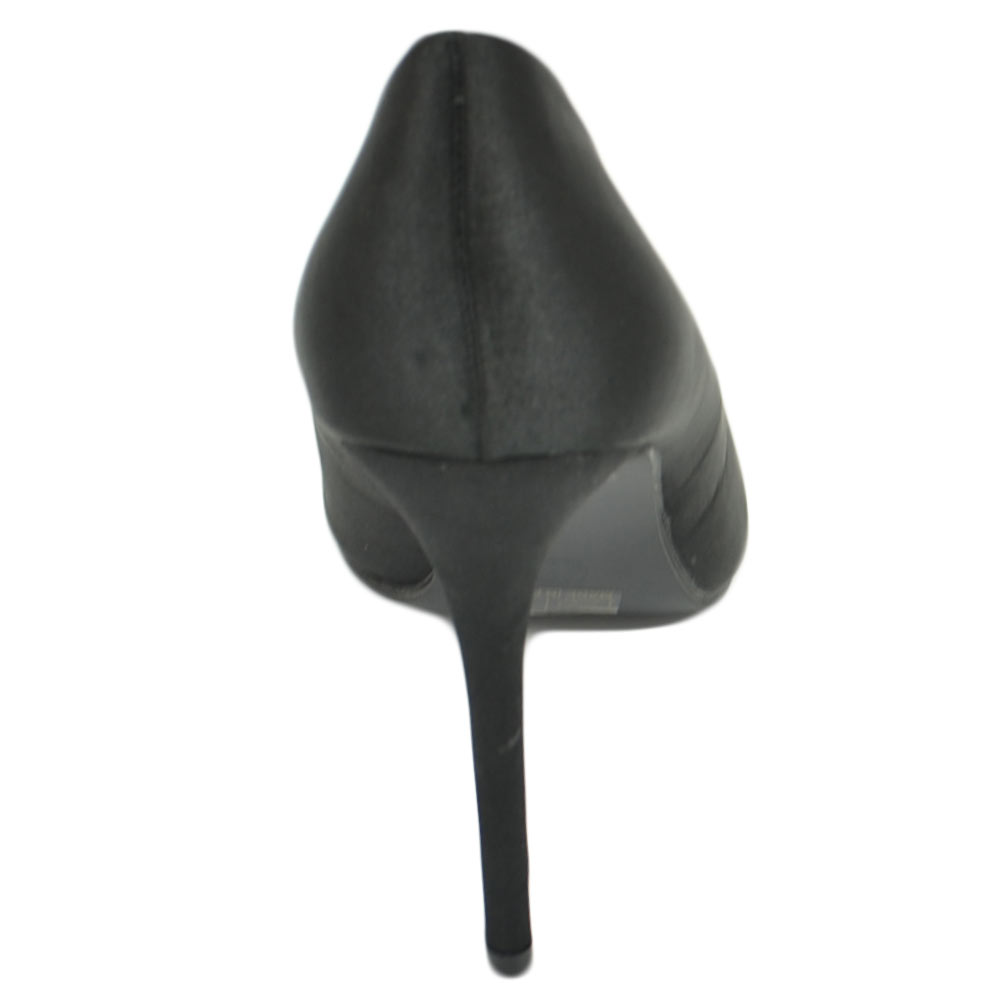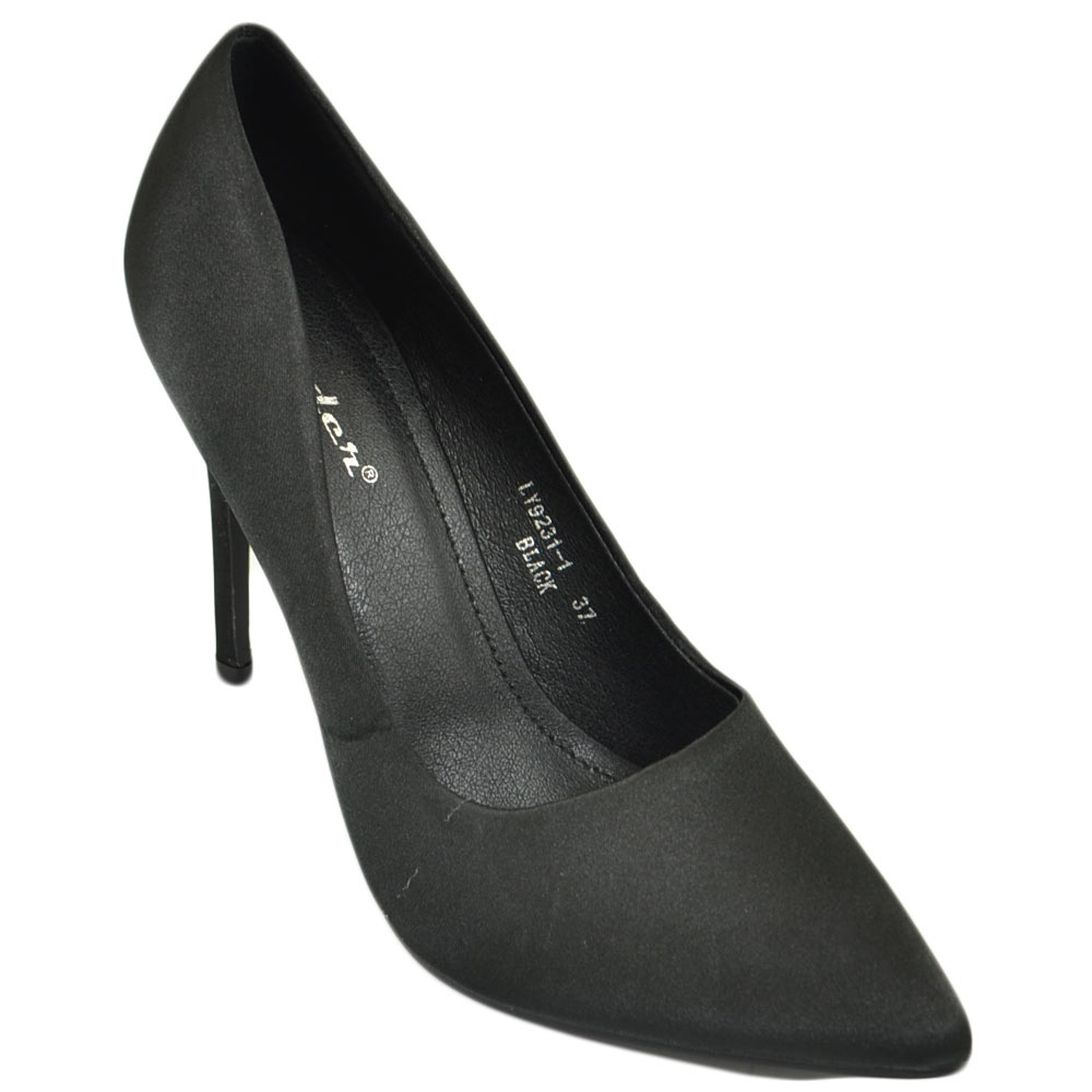 Scarpe donna decollete a punta elegante in raso nero lucido tacco a spillo 12 cm moda elegante cerimonia evento