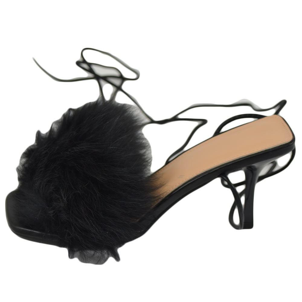 Scarpe donna sandalo nero mules pelliccia con tacco martini 9 cm lacci alla schiava moda tendenza con pelo