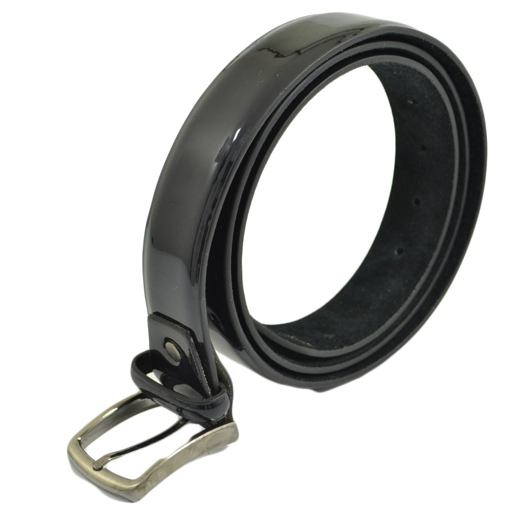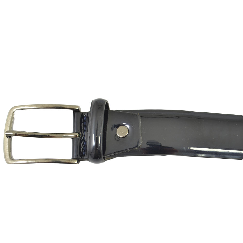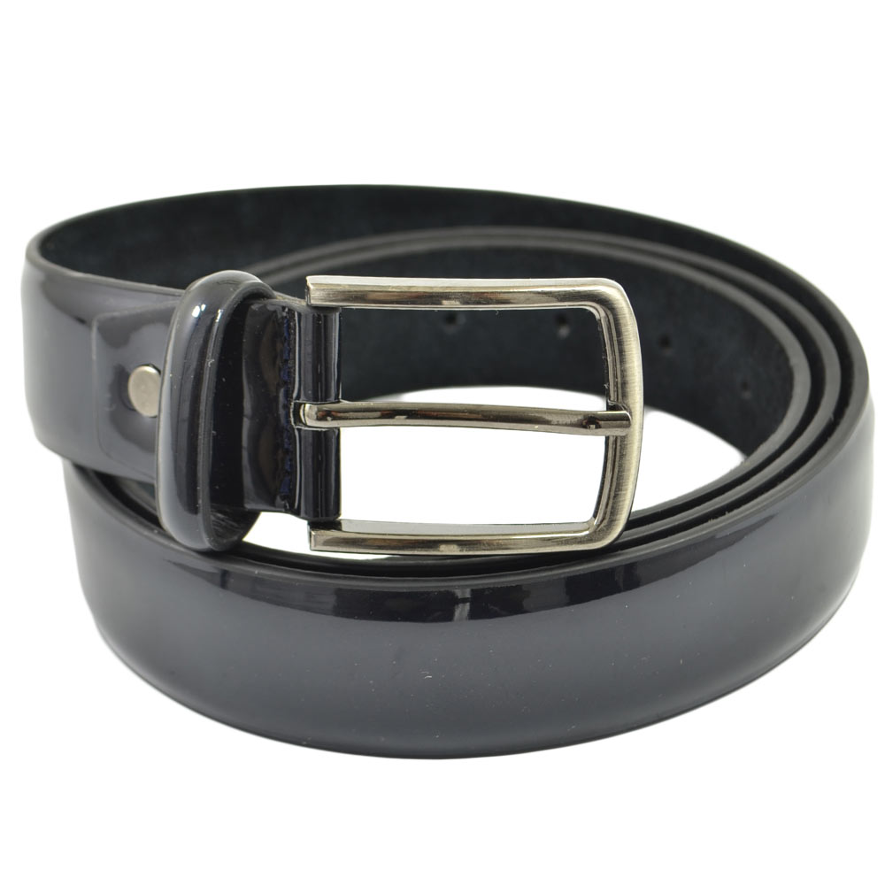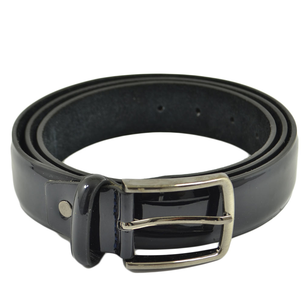 Cintura Uomo Cintura Regolabile Pellame Lucido Abrasivato Blu Tinta Unita con Fibbia in Metallo Linea Classica